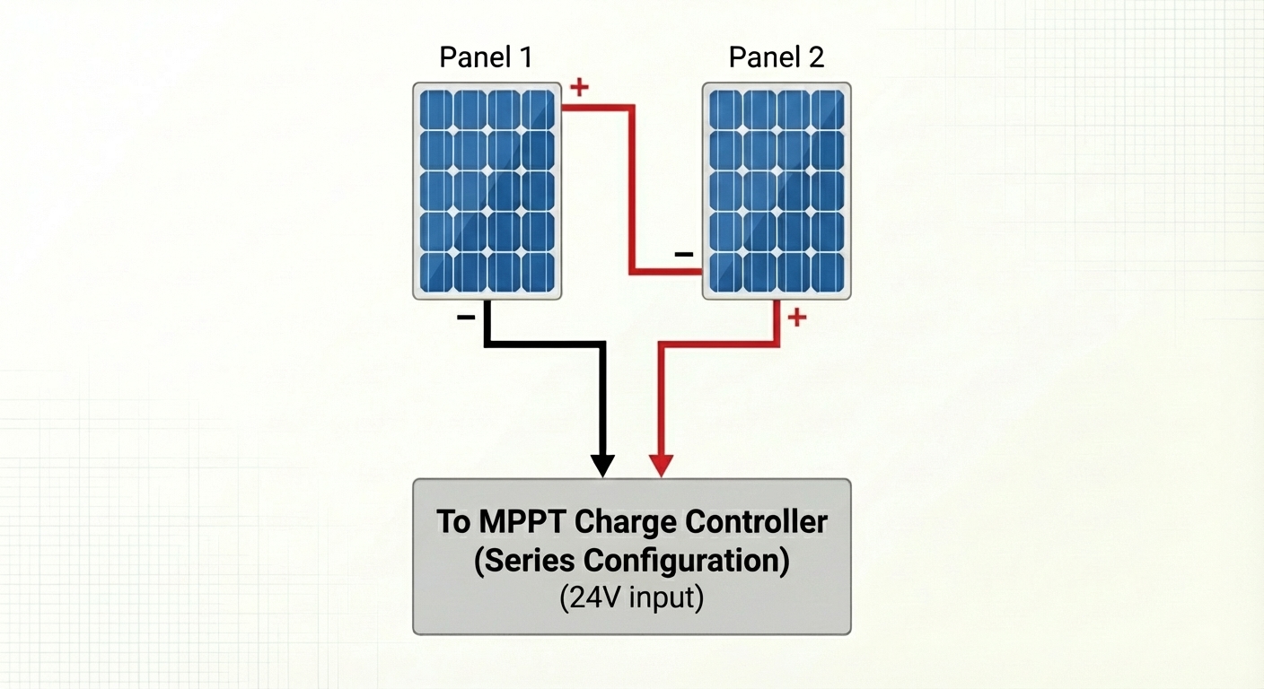 MPPT charge controllers work by converting high-voltage solar input to the appropriate battery voltage. With series wiring, they have more headroom to find the optimal power point, especially in hot weather when panel voltage drops.